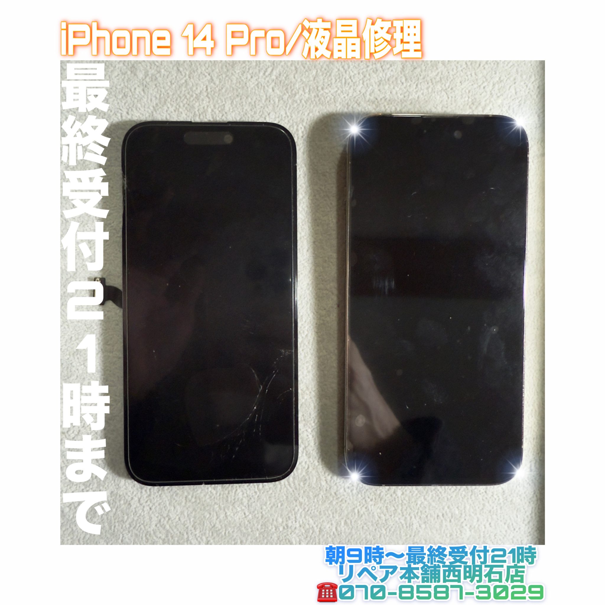 💡20時前に明石市の方より、iPhone 14 Proを落とし液晶に不具合が発生し、液晶修理のご依頼です🛠️