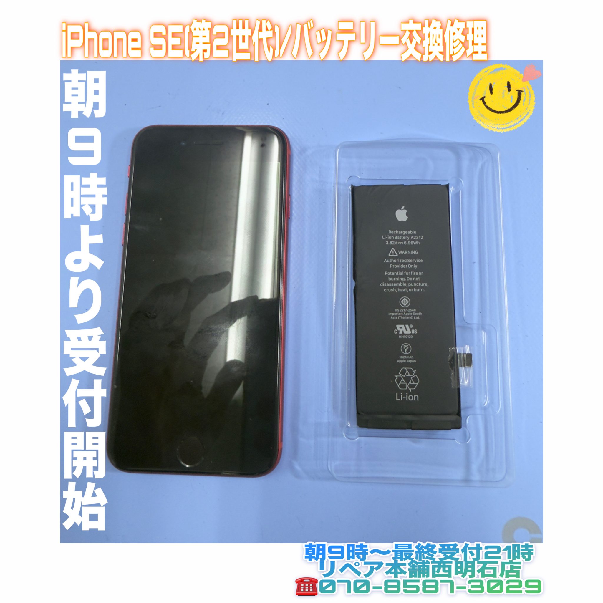 💡20時頃に明石市大久保の方より、iPhone XS Maxのバッテリー交換修理のご予約を頂きました🔧