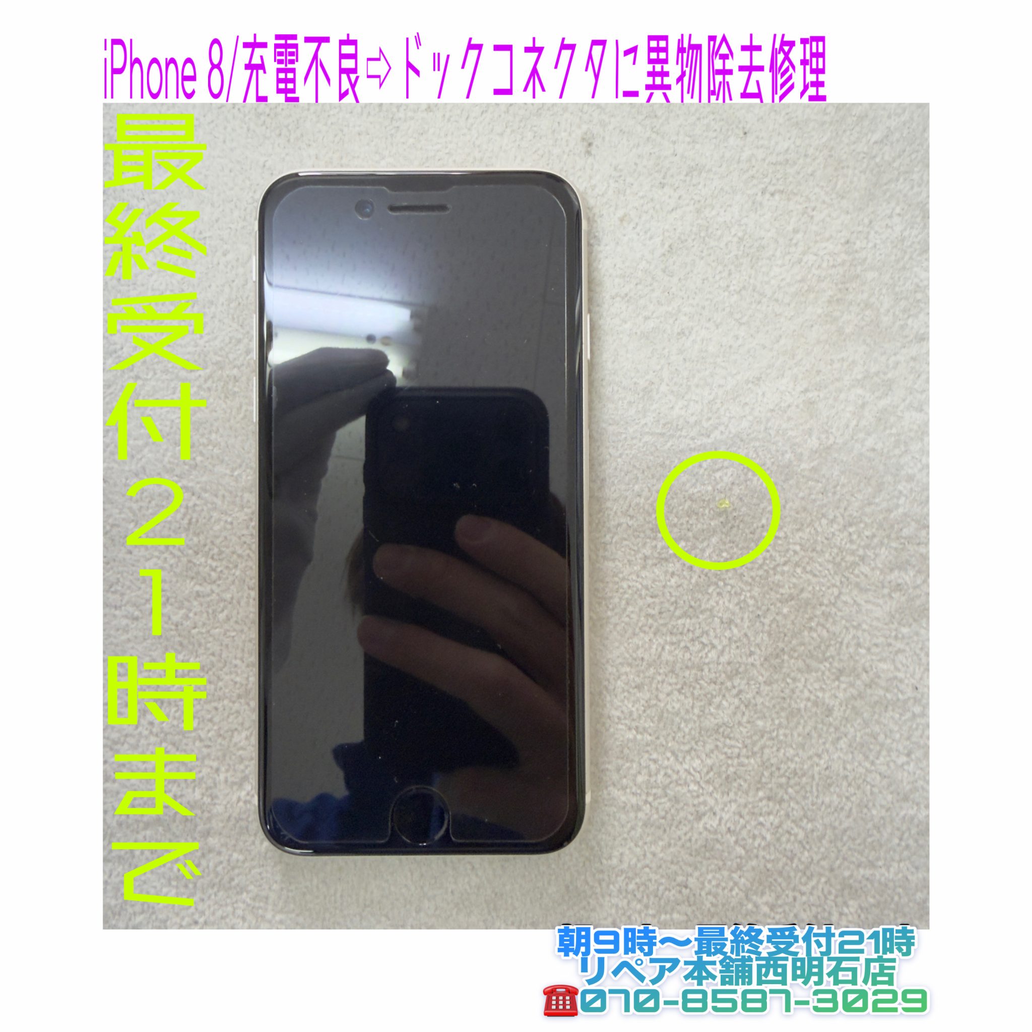 💡明石市西明石の方より、iPhone 8が充電不良でドックコネクタ内部に異物が入り取出し修理にてご来店です🛠️