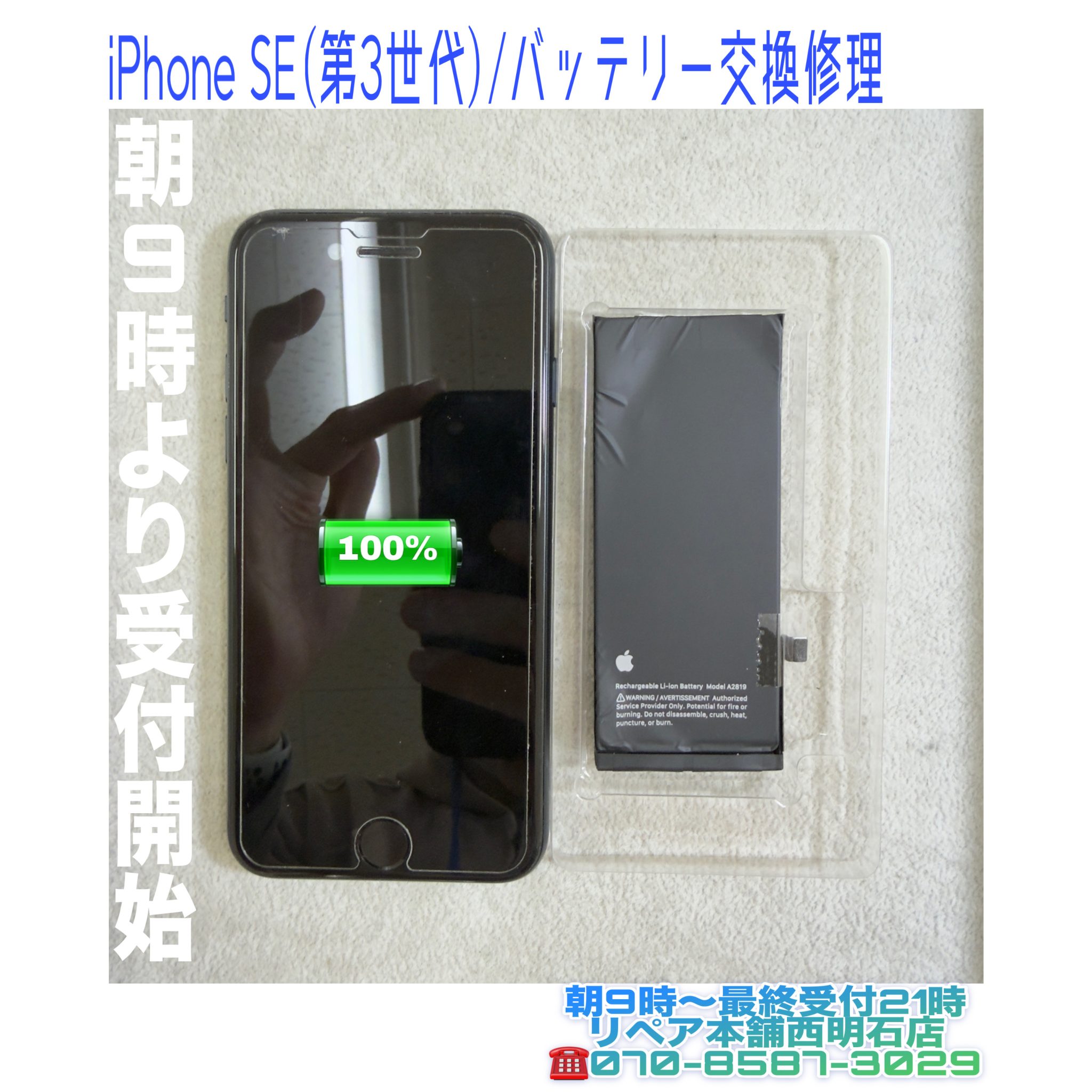 💡明石市藤江の方より、iPhone SE(第3世代)のバッテリー交換修理のご予約を頂きました🔋