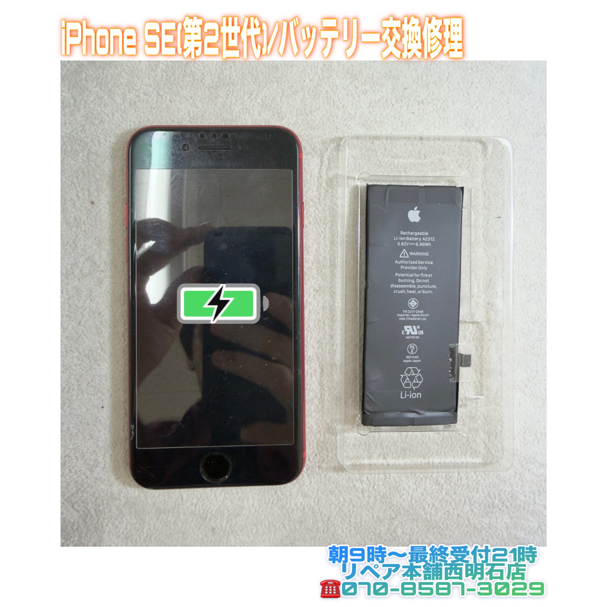 💡 明石市大久保の方より、iPhone SE(第2世代)のバッテリー交換修理のご予約を頂きました🔋