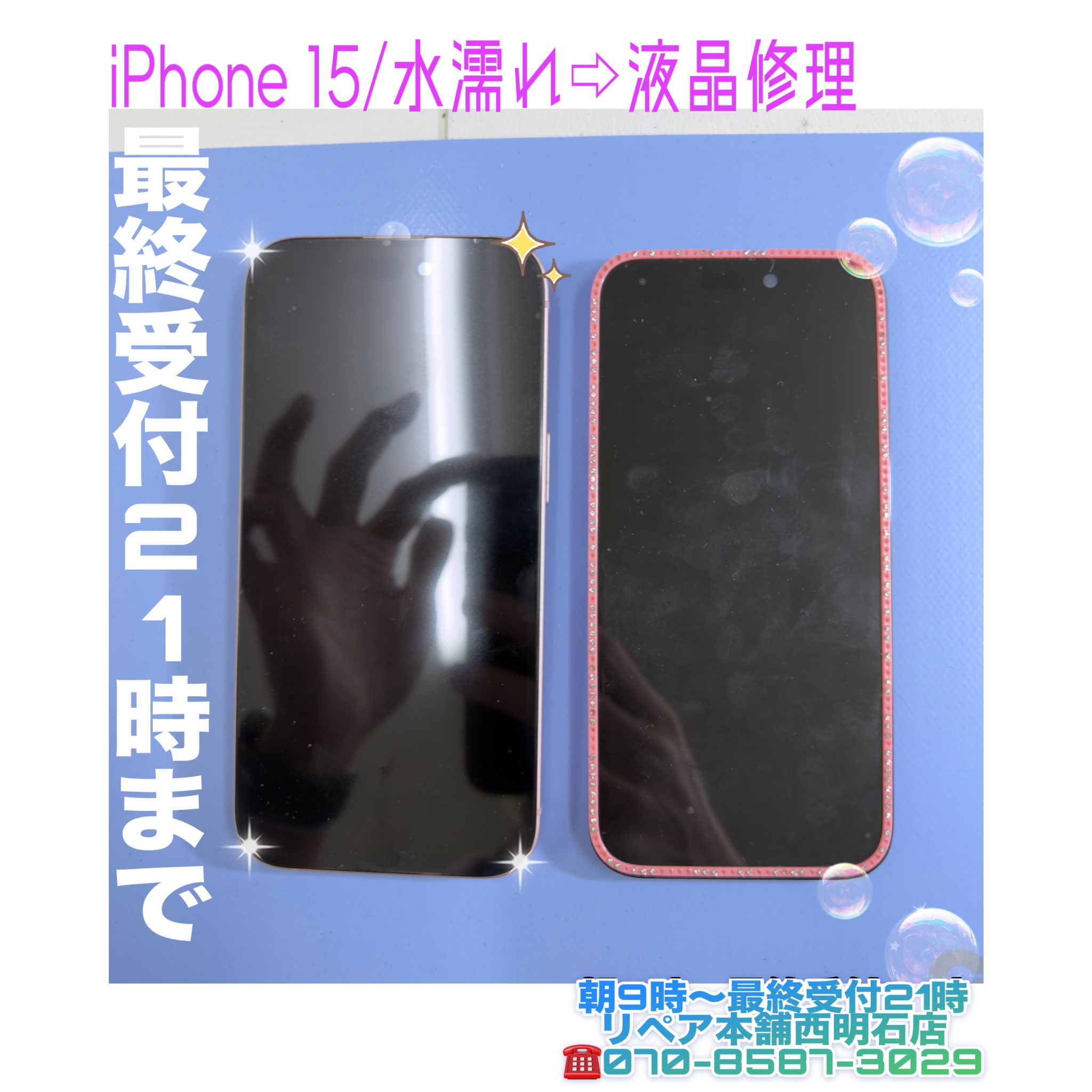 💡明石市二見の方より、iPhone 15を水濡れし液晶修理のご依頼です🛠️