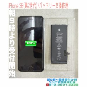リペア本舗西明石店 > バッテリー交換修理 > 💡明石市の方より、iPhone SE(第2世代)が電池の持ちが悪くなりバッテリー交換修理のご依頼です🔋