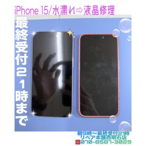 💡明石市二見の方より、iPhone 15を水濡れし液晶修理のご依頼です🛠️