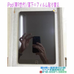 💡明石市西明石の方より、iPad(第9世代)を落下させ画面では無くフィルムが破損し貼り替えのご依頼です✨