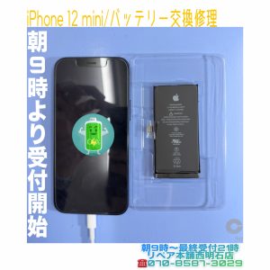 リペア本舗西明石店 > バッテリー交換修理 > 💡明石市西明石の方より、iPhone 12 miniの電池の持ちが悪くなりバッテリー交換修理にてご来店です🔋