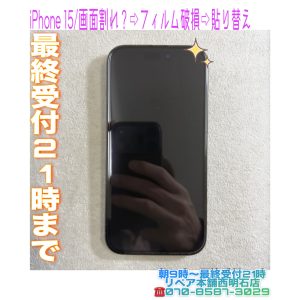 💡神戸市西区の方より、iPhone 15を落とし画面割れと思ったがフィルムの破損で貼り替えのご依頼です🛠️ | リペア本舗西明石店