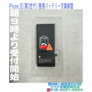 💡神戸市西区の方より、iPhone SE(第3世代)のバッテリーが膨張しバッテリー交換修理のご依頼です🔋