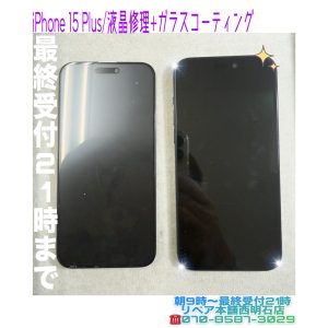 💡 明石市西明石の方より、iPhone 15 Plusの液晶修理とガラスコーティングのご依頼を頂きました🛠️